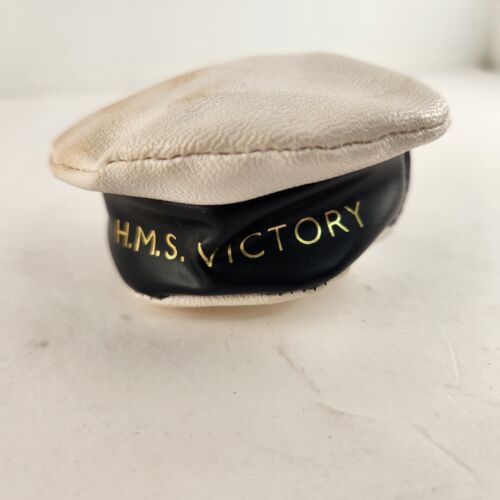 HMS Victory Sailor Cap Coin Purse Zip Close Vintage England Ship Leather 1950s