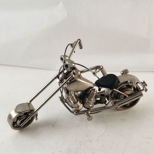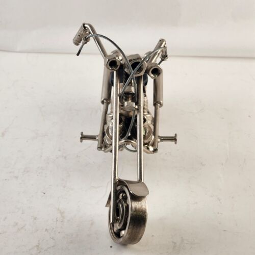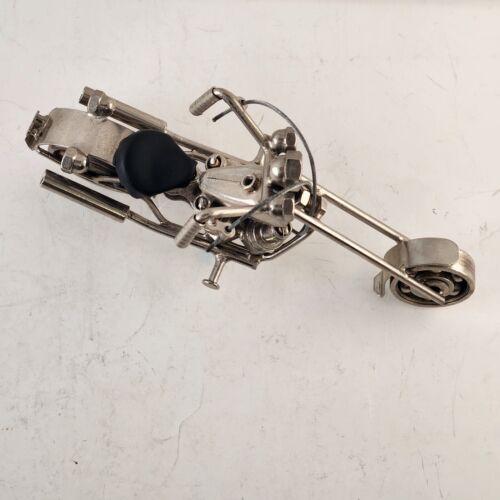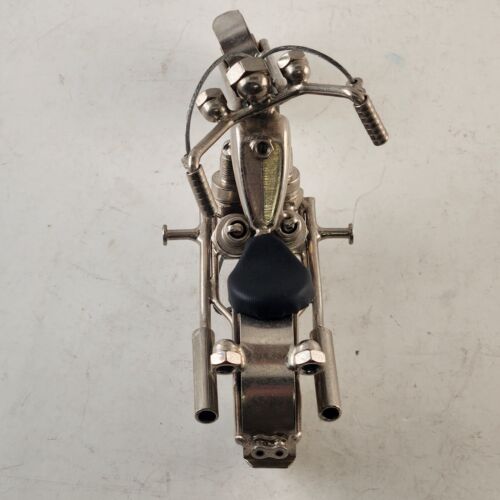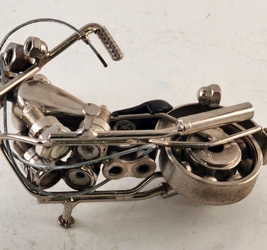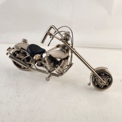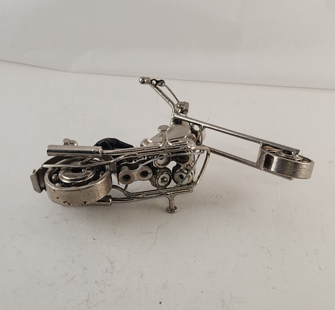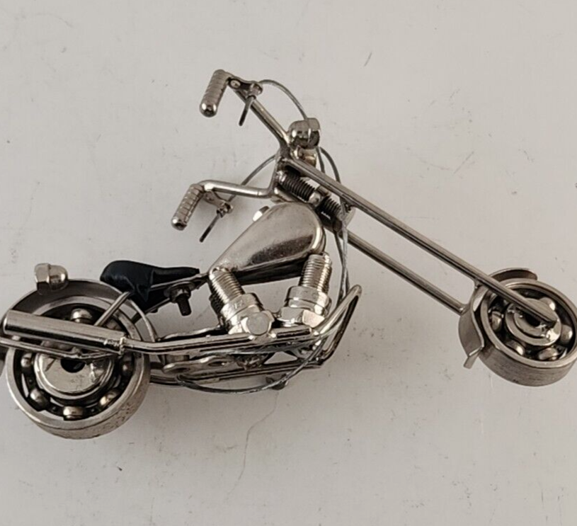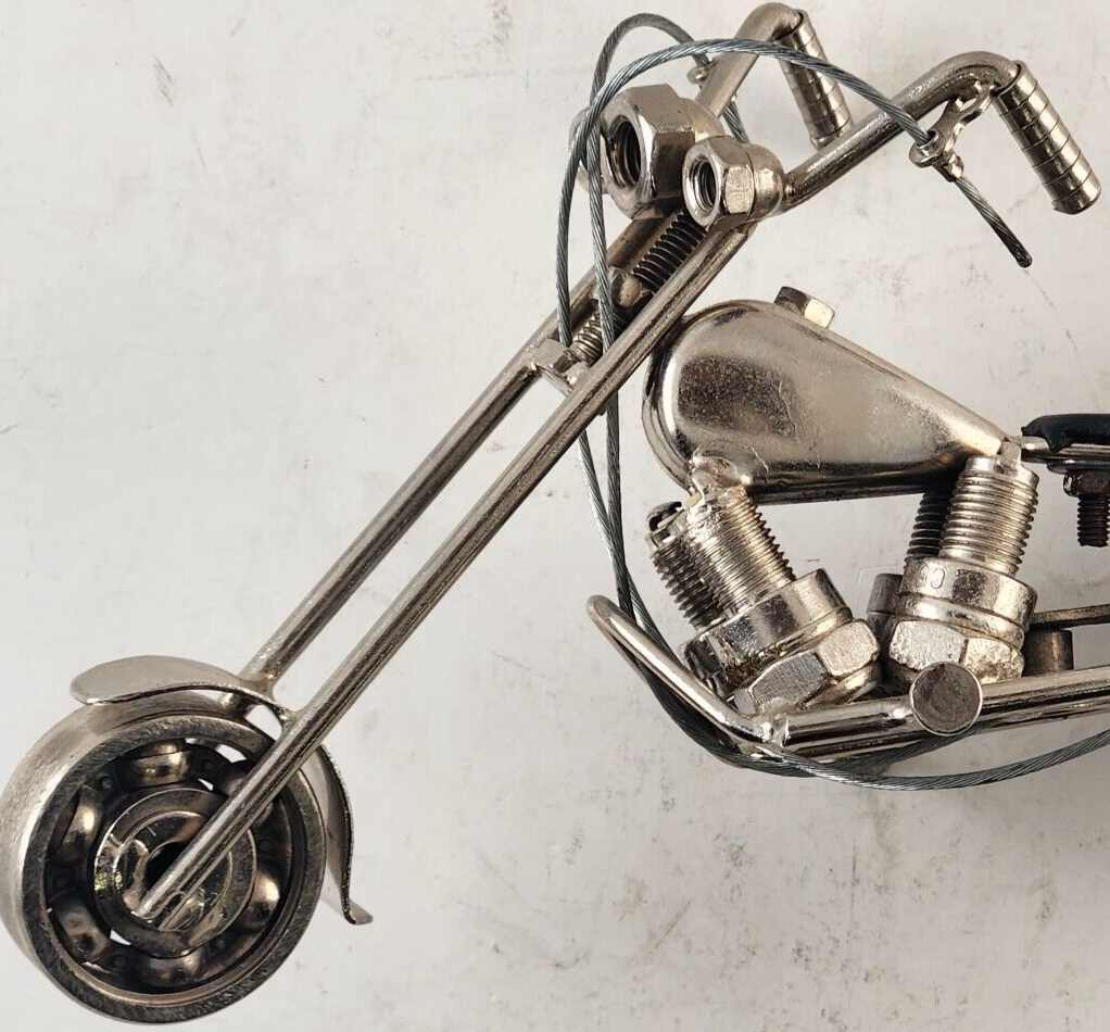Homemade Chopper Motorcycle Scrap Art Uses Nuts Bolts Bearings Spark Plugs More
