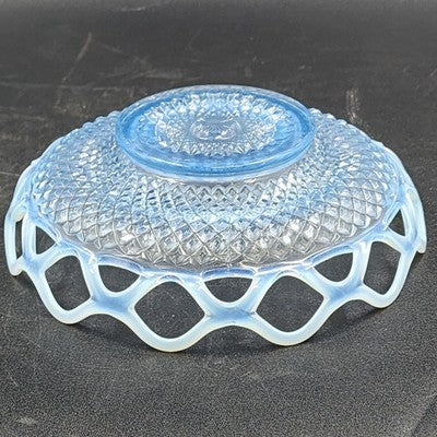 Imperial Katy Blue Bowl Opalescent Diamond Lace Edge Depression Glass 8"