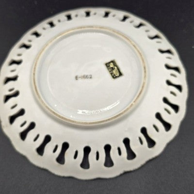 Inarco Tea Cup E-1052 Saucer E-1662 Lusterware Roses Reticulated Edge Japan