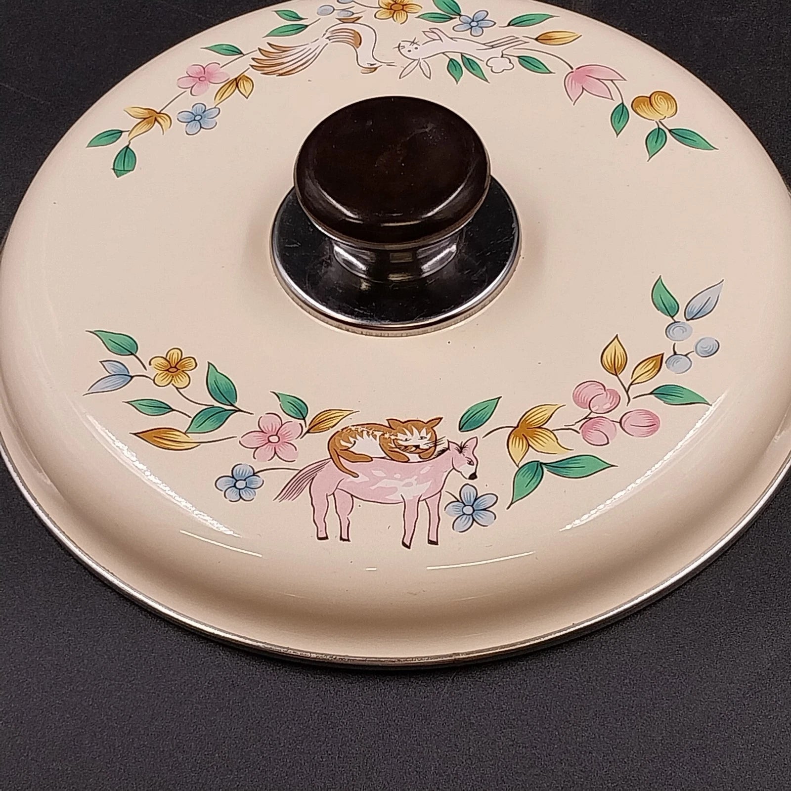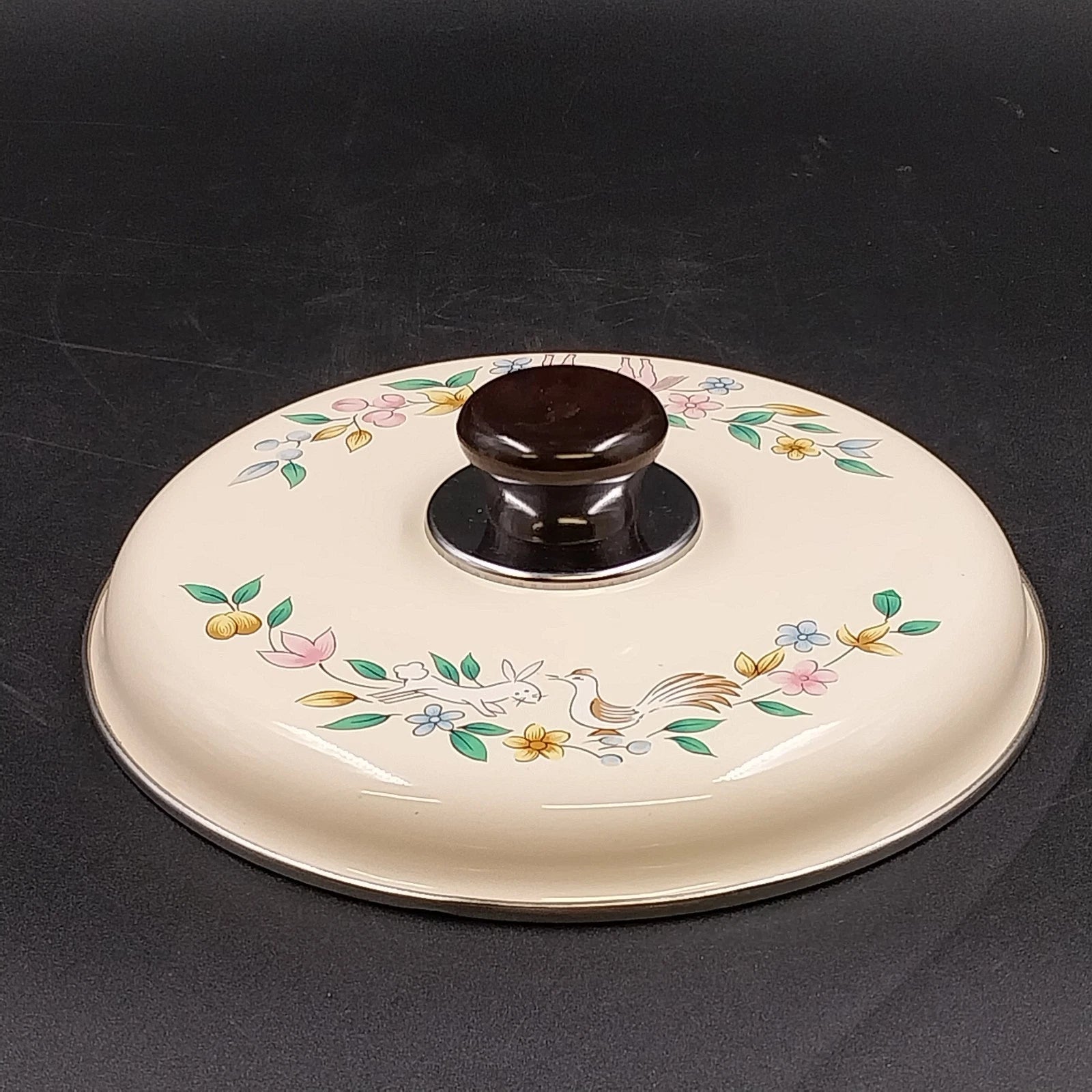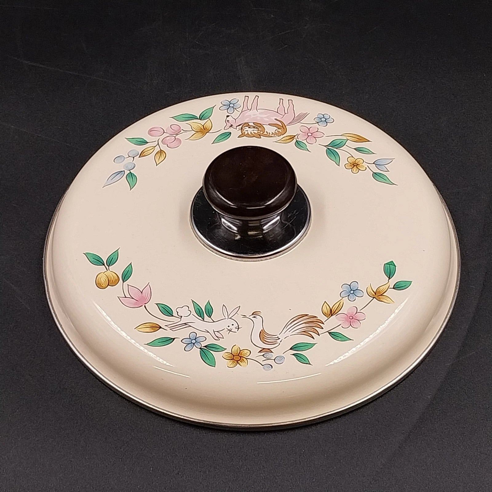 International Heartland Saucepan Lid 9"OD Enamelware Pot Cover Floral Black Knob
