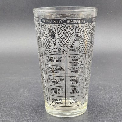 Craft your next cocktail with ease using this Irvinware Cocktail Mixology Glass Mixer Shaker, a genuine piece of 1950s American barware. Adorned with original vintage drink recipe graphics, this shaker is not just functional-it's a nostalgic conversation starter.