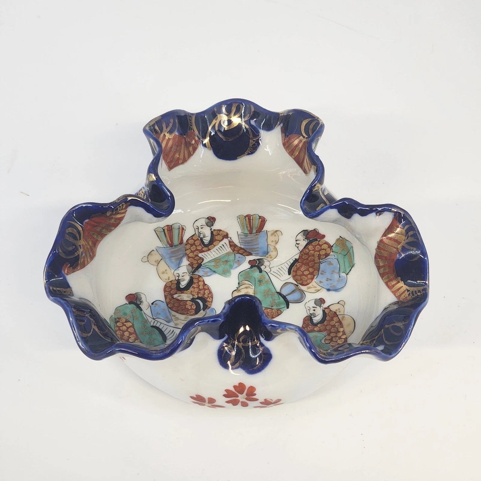 Japanese Imari Porcelain Ruffled Bowl 6" Cobalt Blue & Gold Gilt Floral Vintage