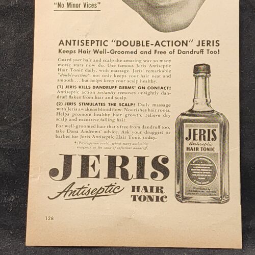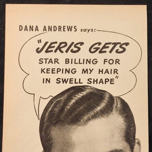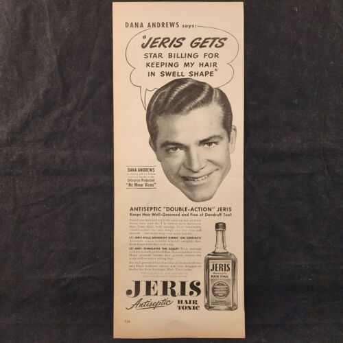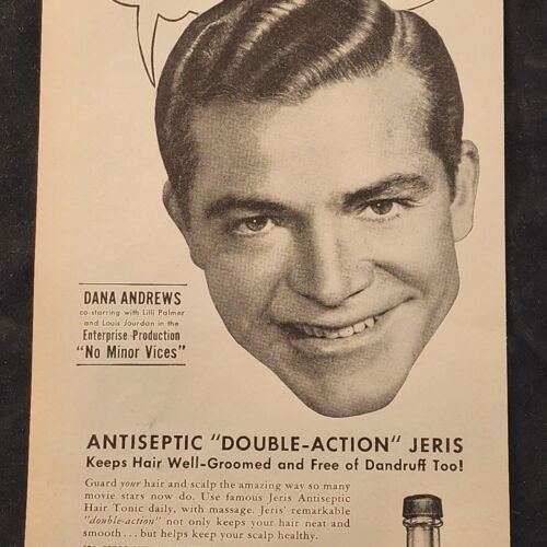 Jeris Antiseptic Hair Tonic Double Action w Dana Andrews 1948 Vintage Print Ad