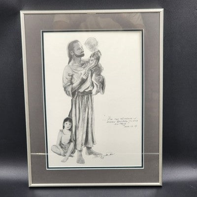Jesus with Children Framed Wall Art Picture Matted 16x20 Scripture Matthew 19:14
