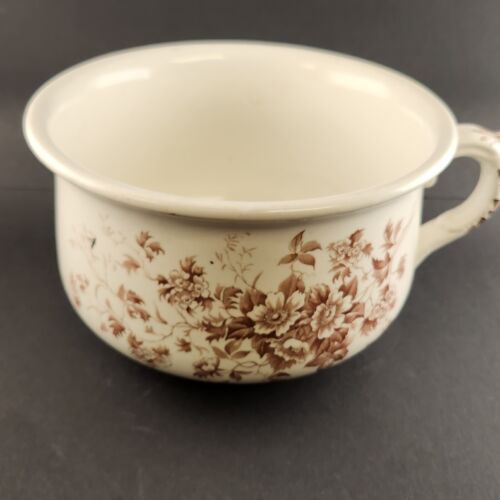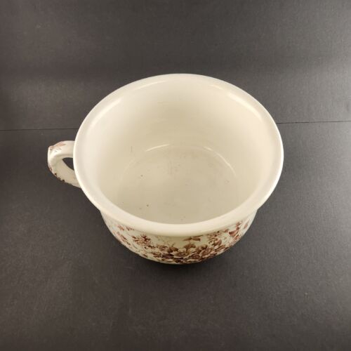 JHW & Sons Semi Porcelain Pottery Chamber Pot Brown Flowers Hanley England 9"x5"