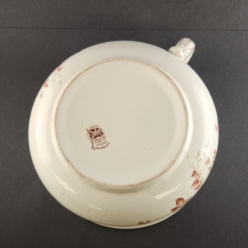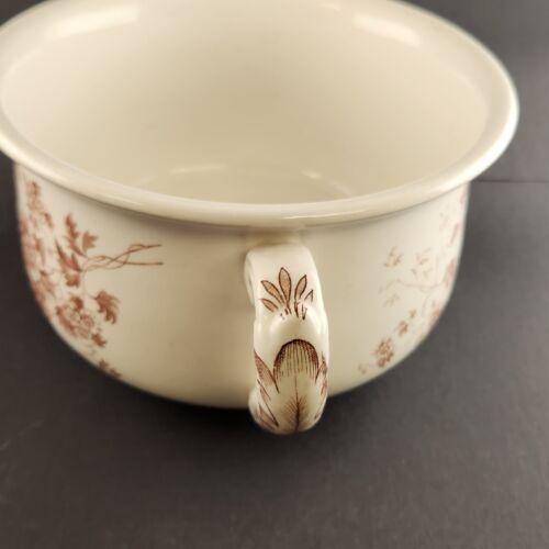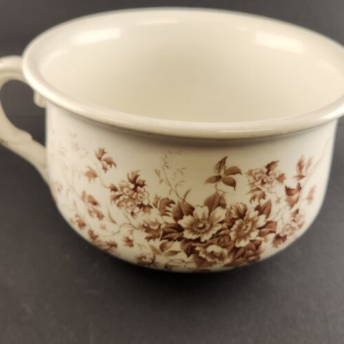 JHW & Sons Semi Porcelain Pottery Chamber Pot Brown Flowers Hanley England