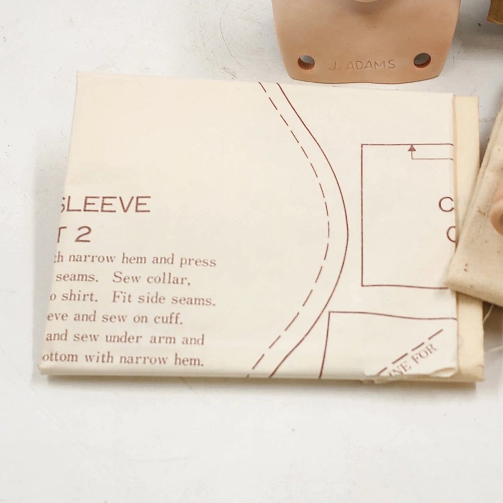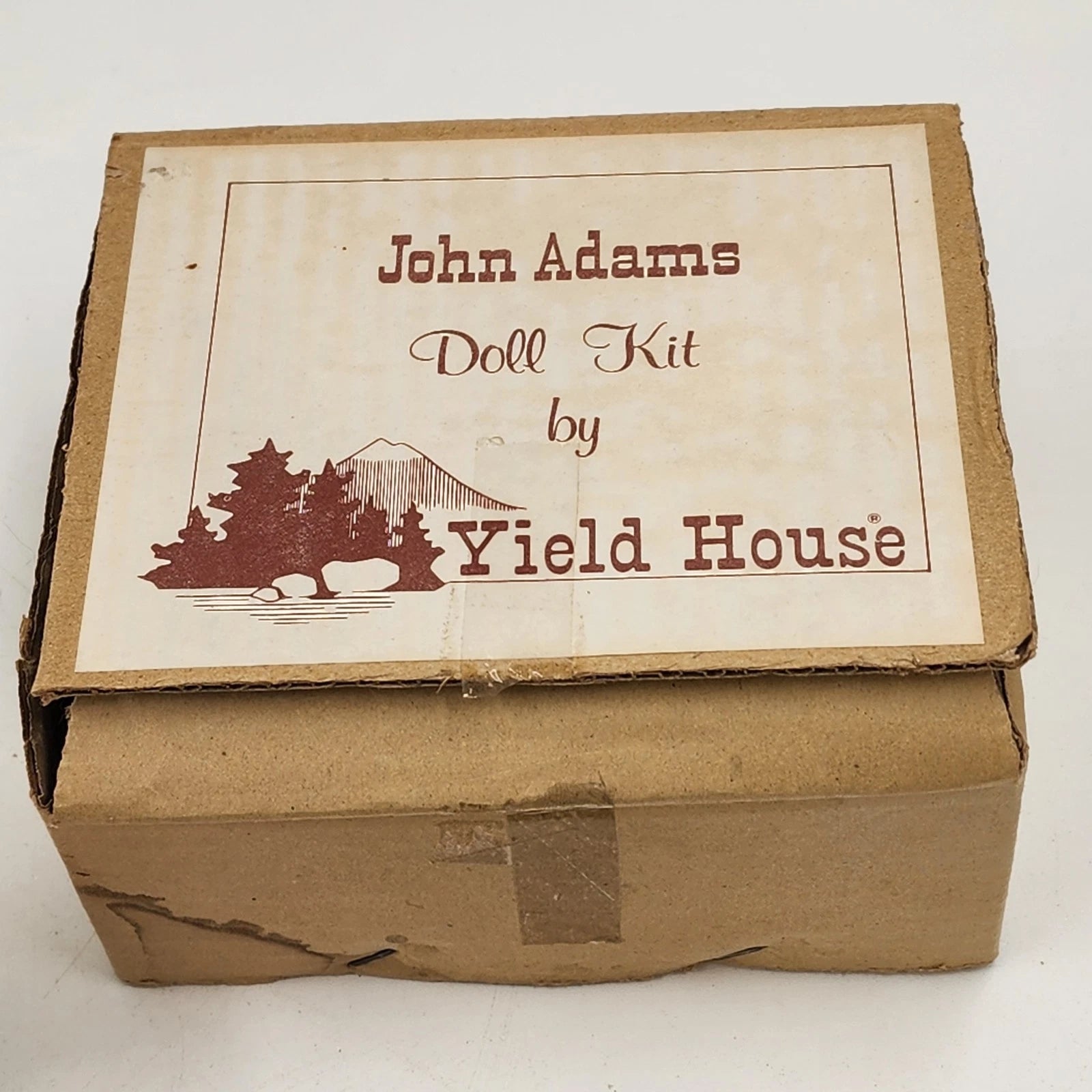 Create your own handcrafted collectible doll with this John Adams Doll Kit by Yield House, complete with head, arms, legs, fabric, and pattern. A perfect addition for crafters or vintage sewing enthusiasts.