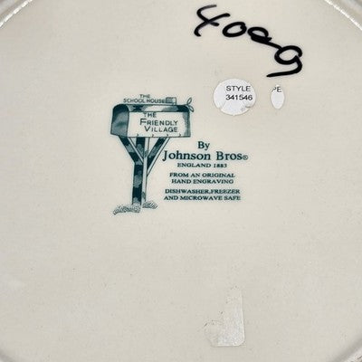 Classic Johnson Brothers "Friendly Village" dinner plate featuring the charming School House country scene design. A timeless collectible, perfect for adding to your set or displaying as vintage décor.