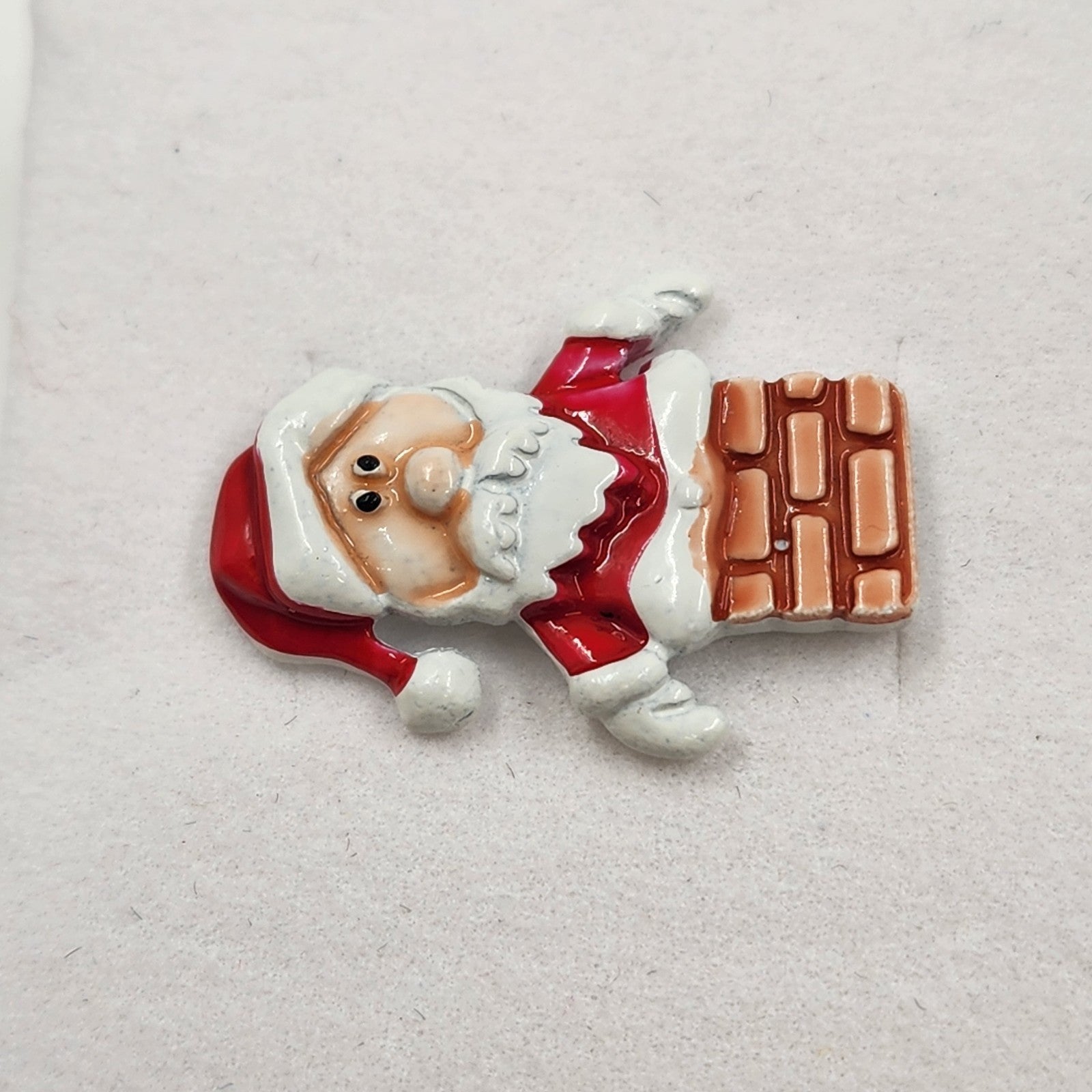 Design: Santa Claus peeking from a chimney, detailed in vibrant enamel