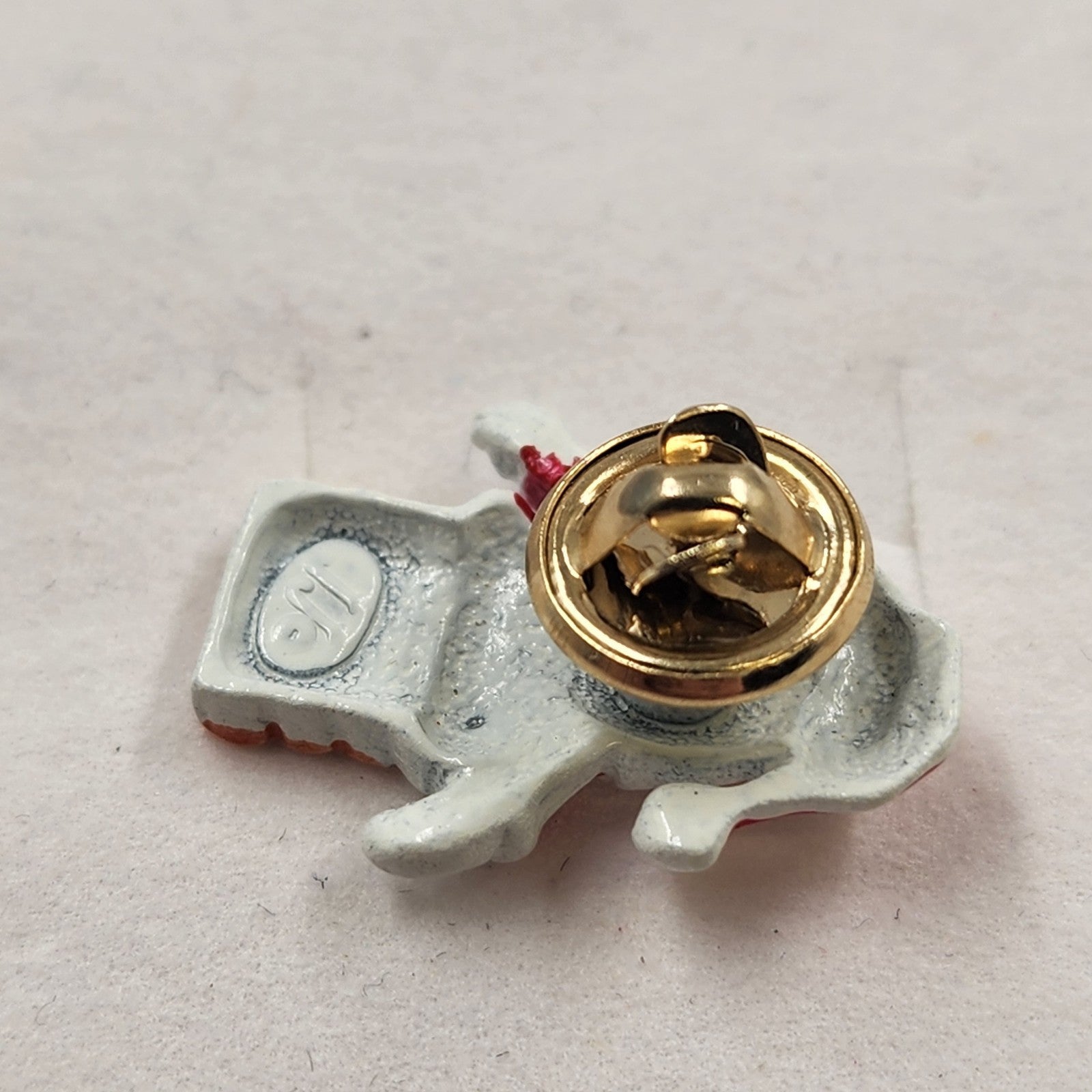 Add a touch of holiday magic to your outfit with this adorable vintage Santa in Chimney brooch from Jonette Jewelry (JJ). This beautifully hand-painted enamel pin captures Santa's jolly spirit as he peeks out from a festive red brick chimney, ready to spread Christmas cheer. Whether you're a collector, a vintage jewelry lover, or just looking for the perfect seasonal accessory, this charming piece is a must-have.