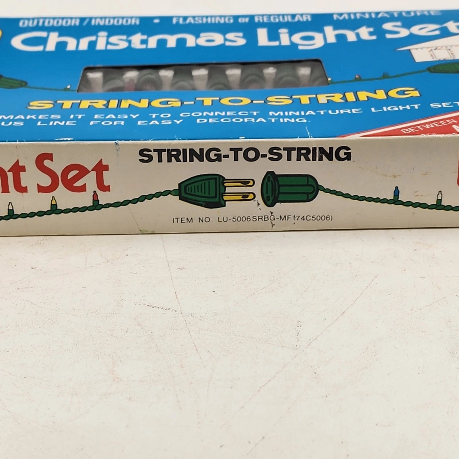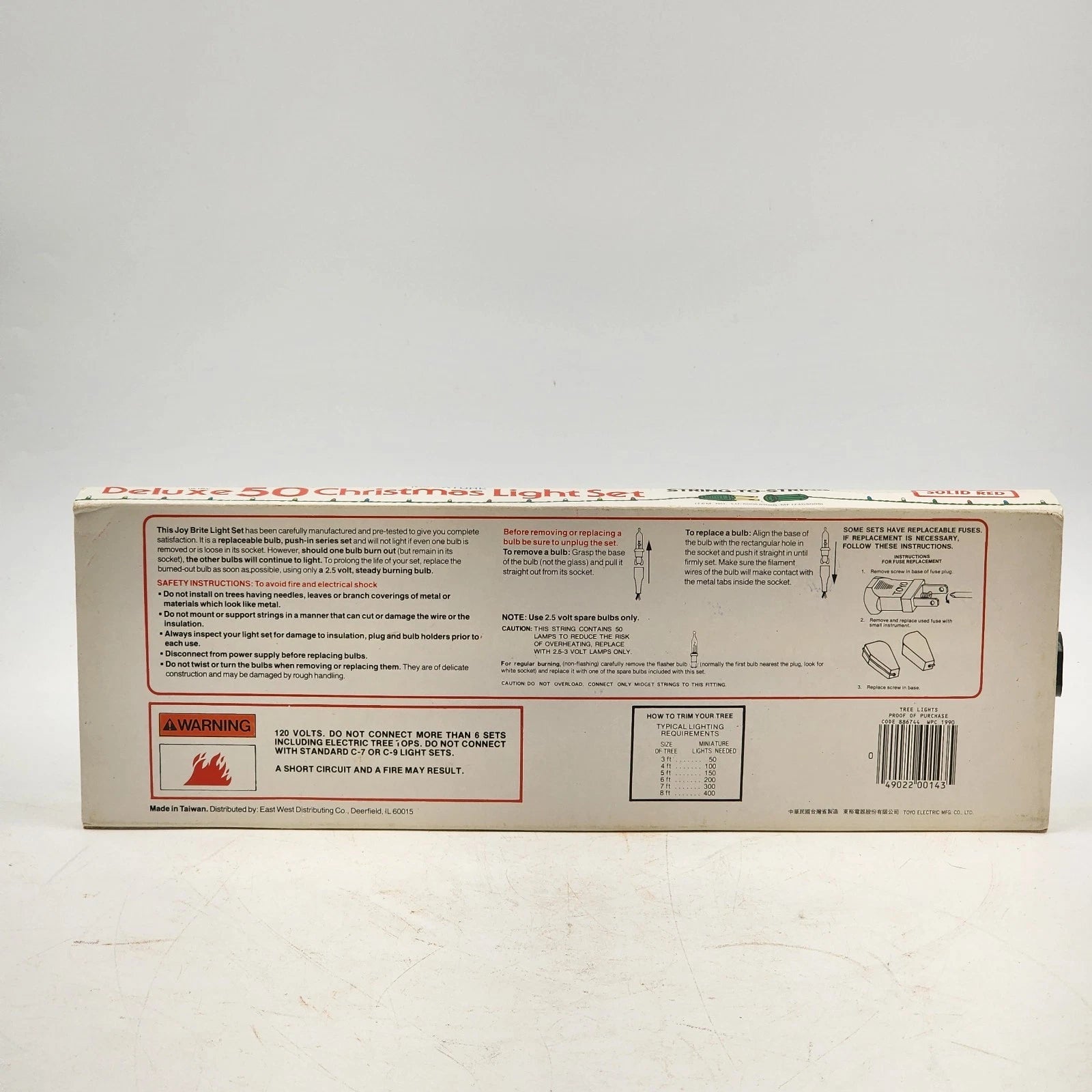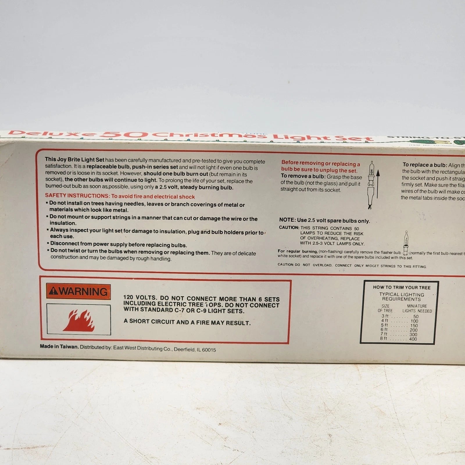 Add a festive sparkle to your holiday décor with this vintage JoyBrite 50 Miniature Christmas Light Set. Features colorful flashing or steady lights, perfect for indoor or outdoor decorating. Still in excellent condition as NOS (New Old Stock).