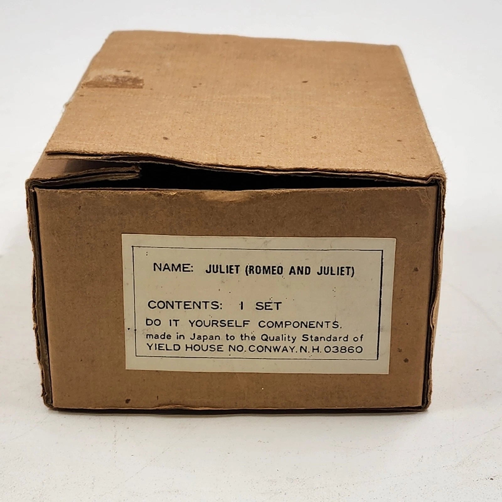 This vintage Juliet Porcelain Doll Kit from the 1970s by Yield House includes a bisque porcelain head, arms, and legs - all new in the original box. Designed as part of the Romeo & Juliet series, this kit is perfect for doll makers, collectors, or restoration enthusiasts.