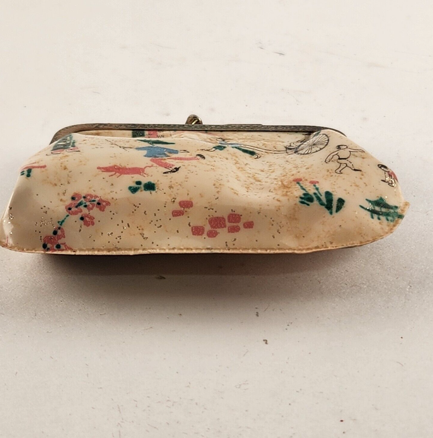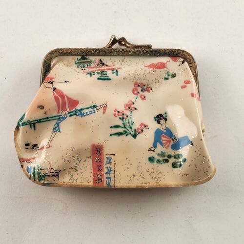 Kiss Top Coin Purse Sparkle Asian Geisha Vintage 1950s Vinyl Change Holder