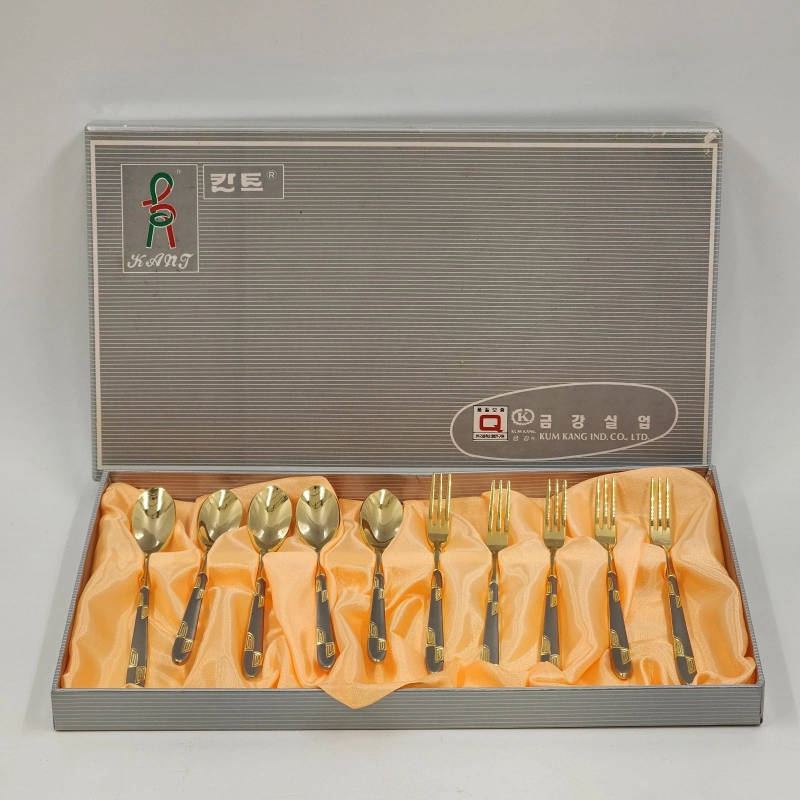 Kum Kang Demitasse Spoon & Fork Set 10 Pcs Gold Tone 18/10 Stainless Steel Boxed
