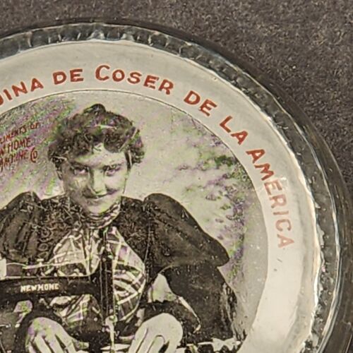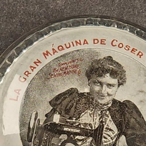 La New Home Sewing Machines Domed Glass Advertising Paperweight 3.5" Vintage