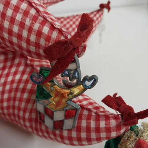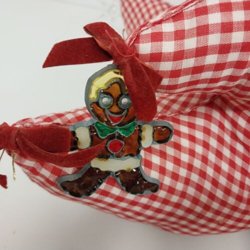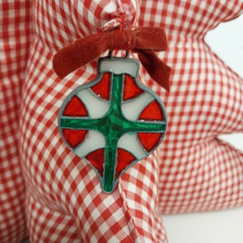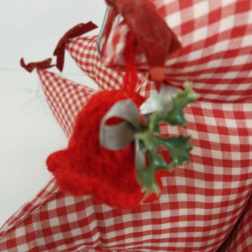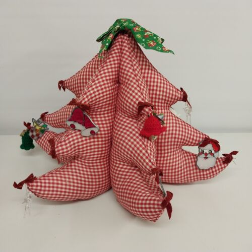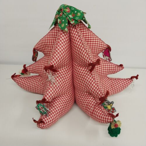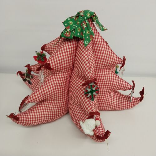 Large Fat Fabric Stuffed Christmas Tree Handmade Red Gingham Body Green Top Bows