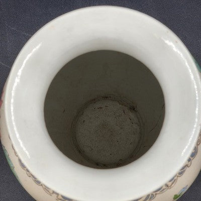 Large Macau Urn-Style Vase – Hand-Painted Pink & Blue Floral Design – 15" x 8" Vintage Oriental-Inspired Home Décor