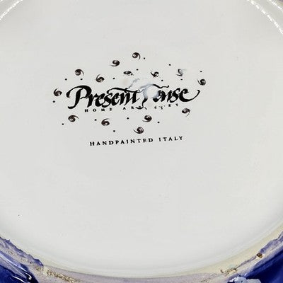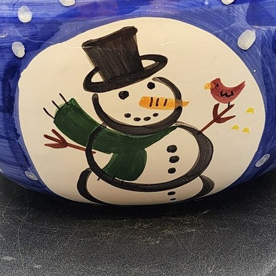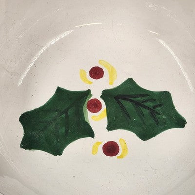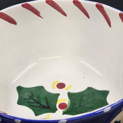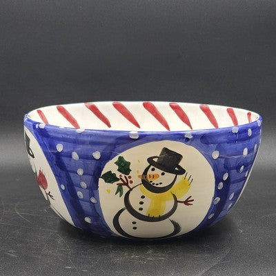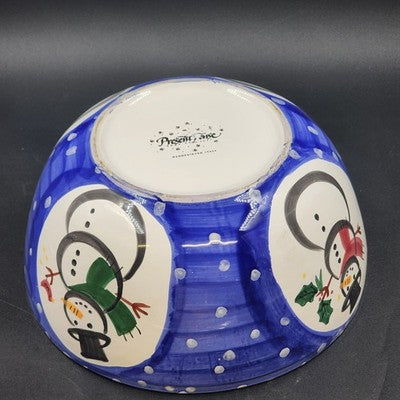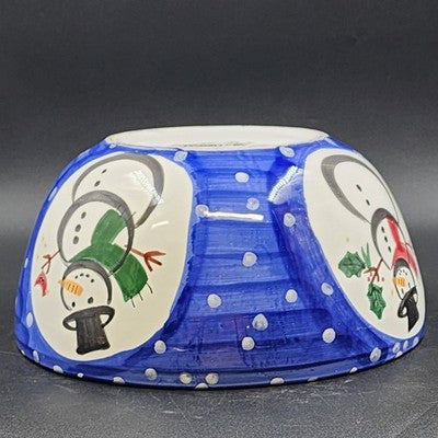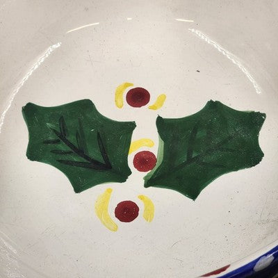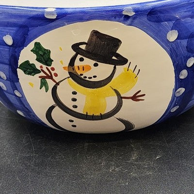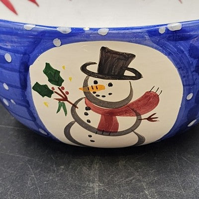 Large Serving Bowl 12" by Present Tense Italy Hand Painted Snowman & Holly Leaf