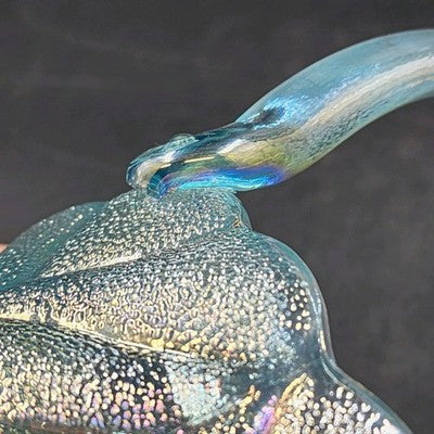 Add a splash of vintage charm to your collection with this stunning L.E. Smith glass basket featuring an aqua blue stippled pattern and a delicately applied loose handle. A lovely display or functional piece, perfect for collectors and decor lovers alike.