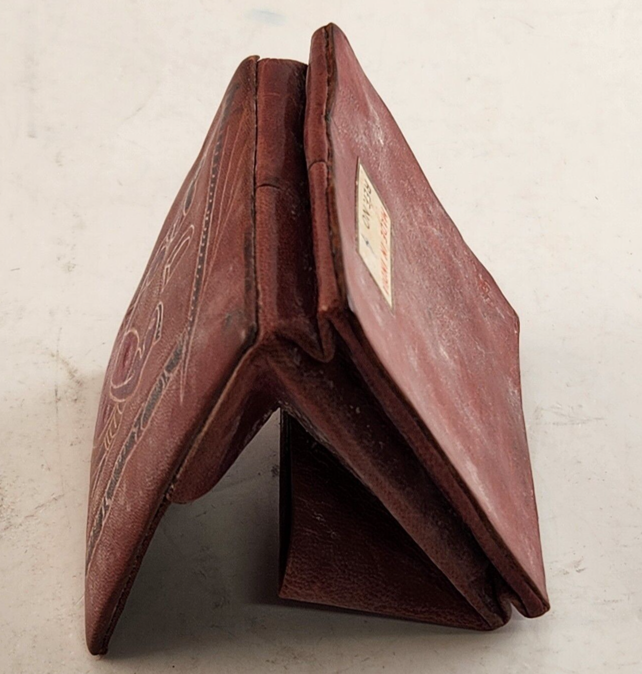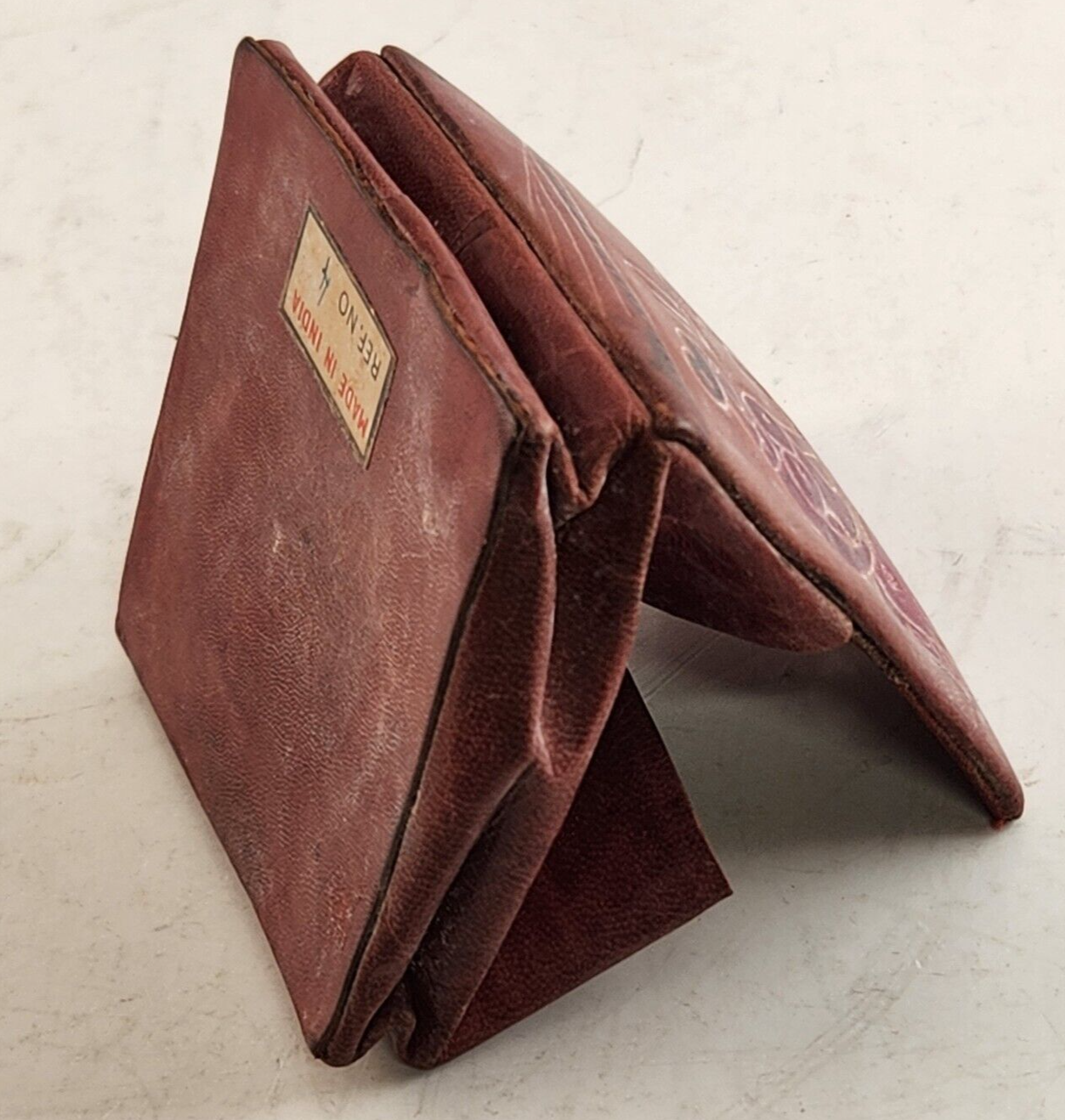 Leather India Coin Purse Fold Up Snap Close Mother Child Tagged Vintage 1960s