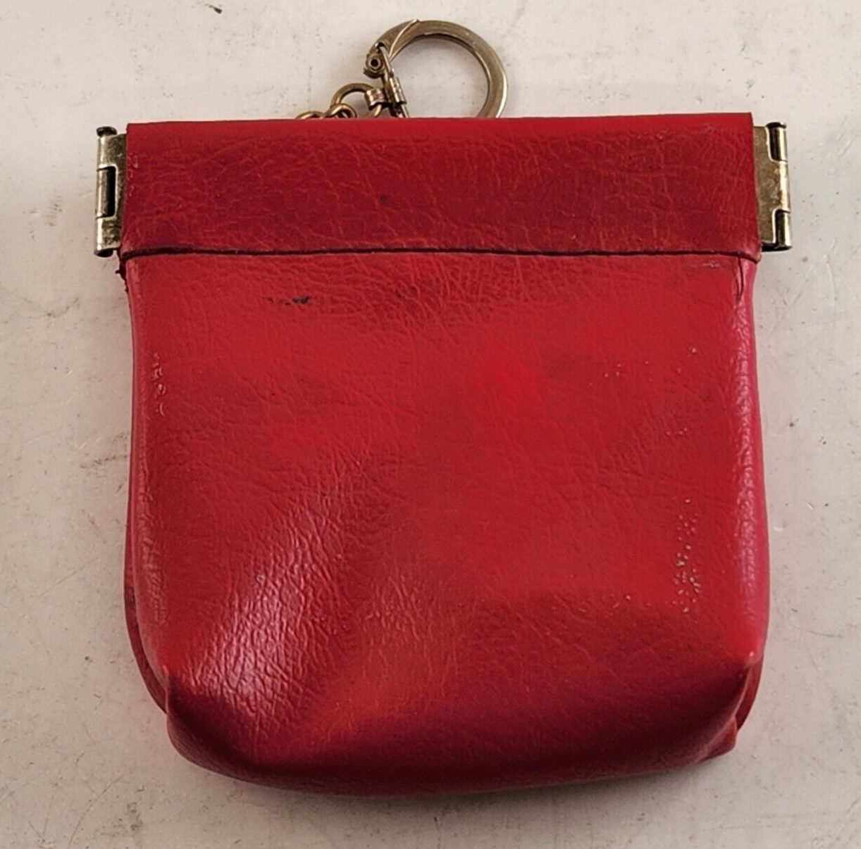 Leather Sqeeze Open Coin Purse KeyChain Red Vintage 1960s England