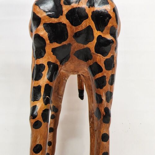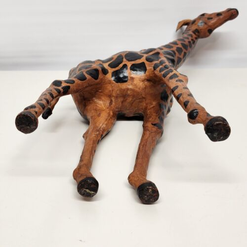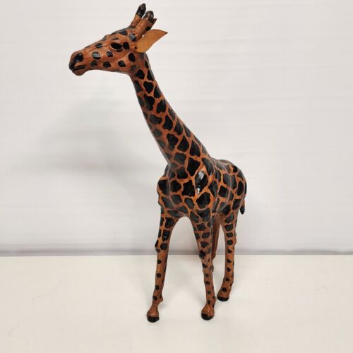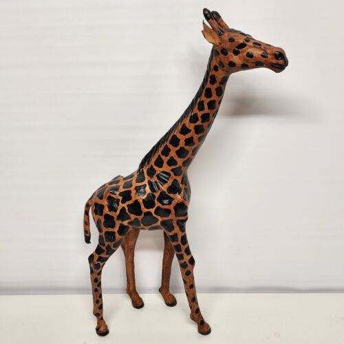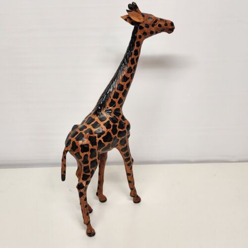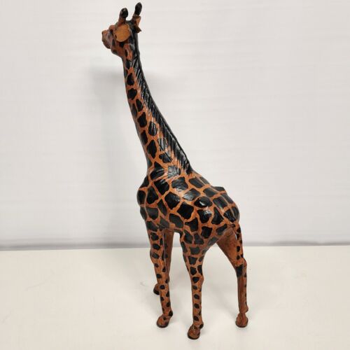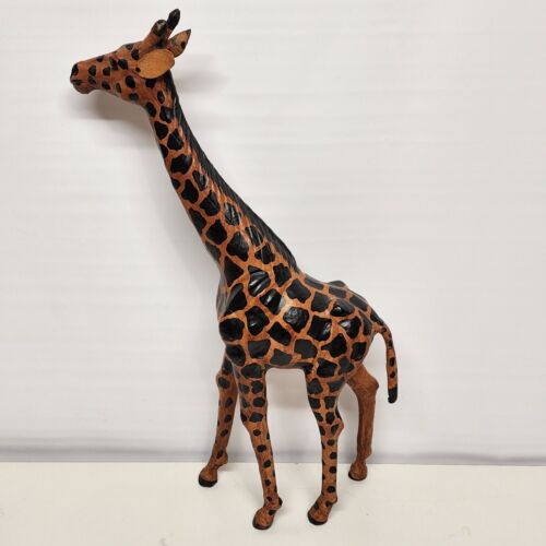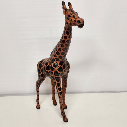 Leather Wrapped Giraffe Figurine Animal Vintage Large 18 Inch Tall Safari Décor