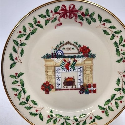 Lenox 1993 Annual Collector Christmas Plate 3rd in Series Signed Fireplace Image