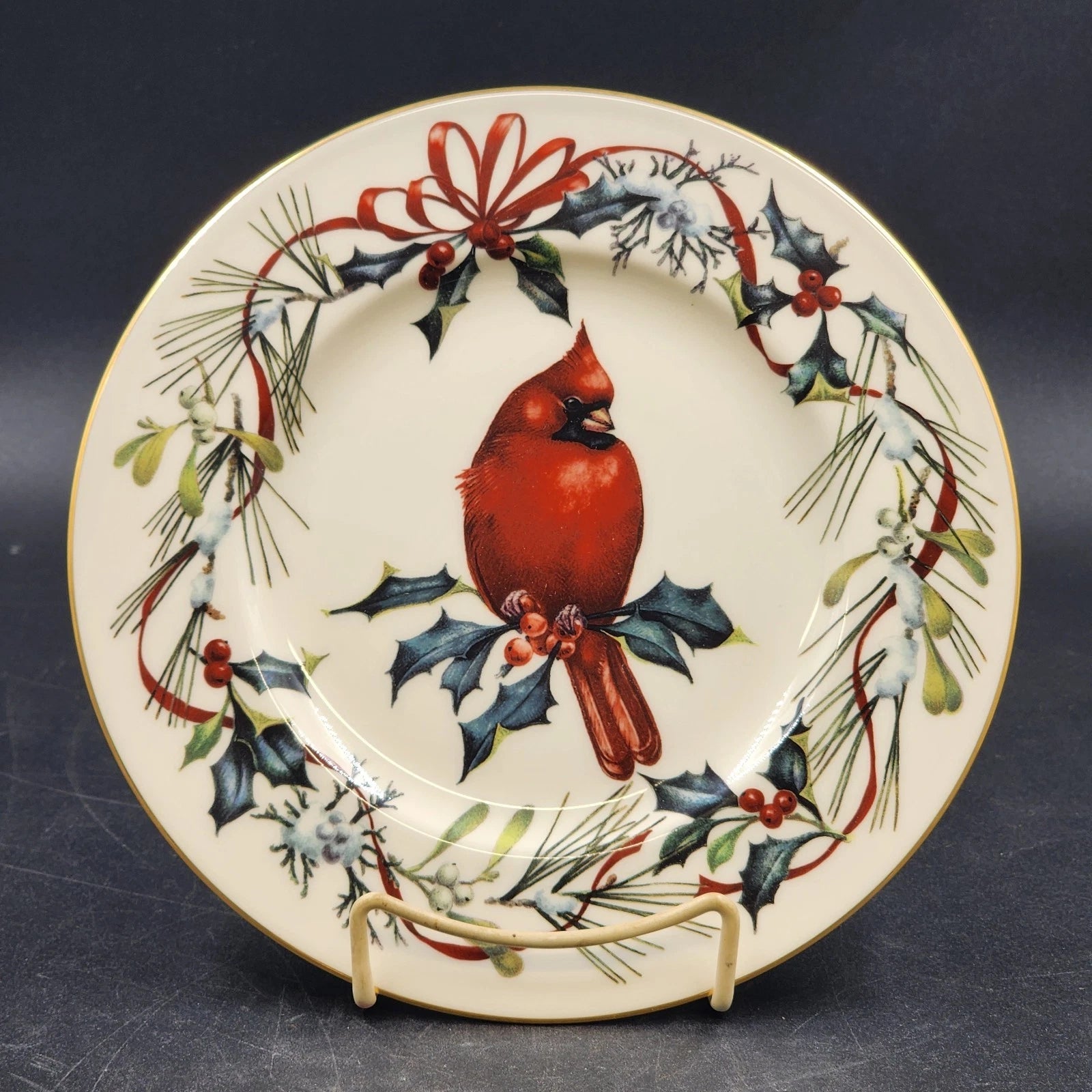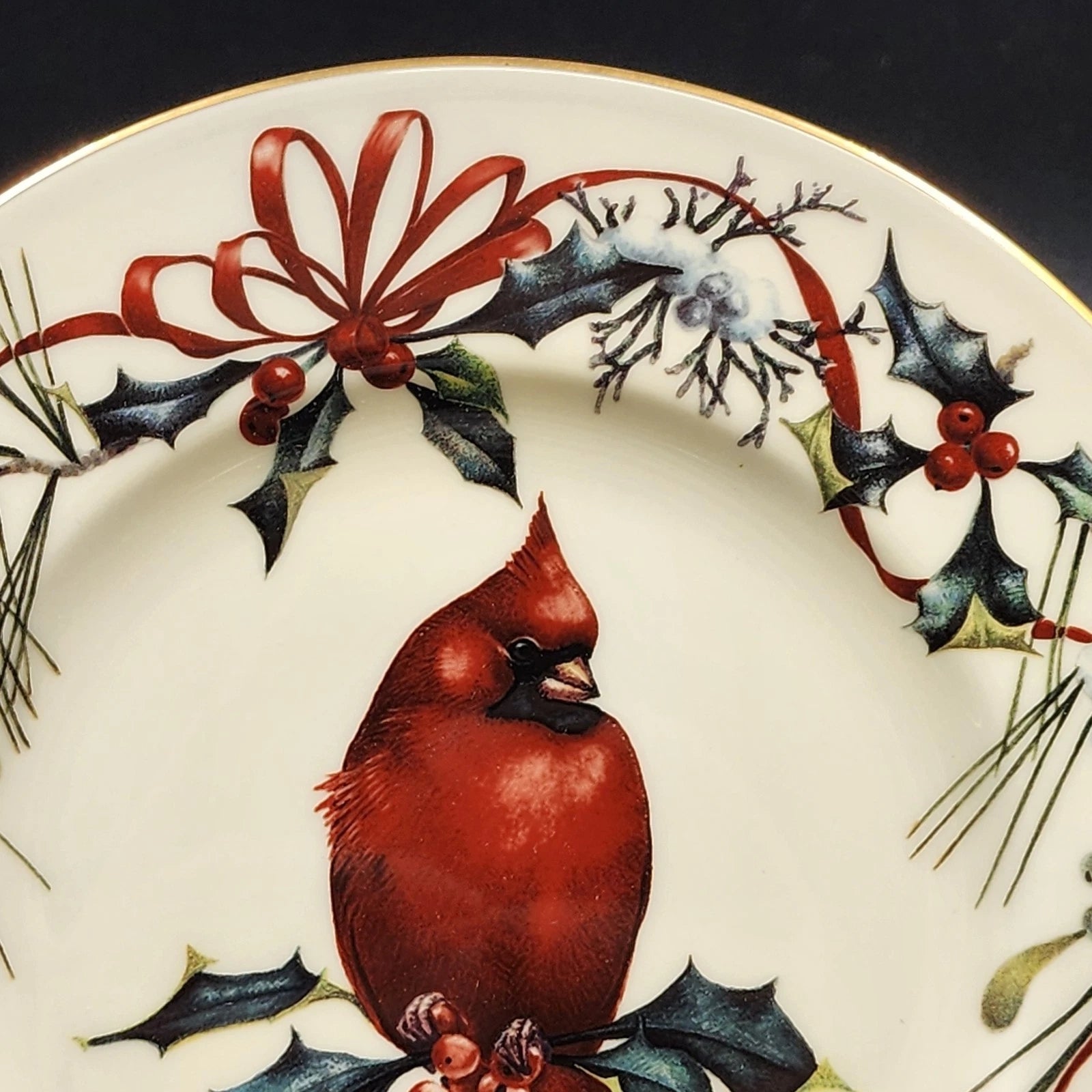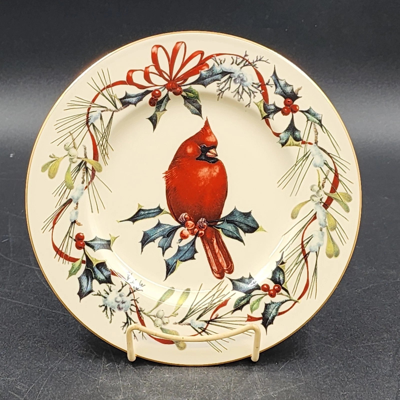 Lenox Accent Luncheon Plate Winter Greeting 9.25" Cardinal Holly Gold Bone China