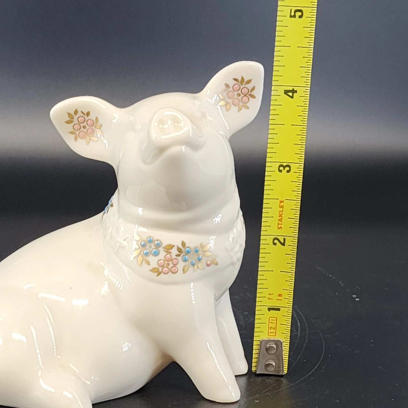 Lenox China Jewels Pig Figurine Porcelain Enamel Flowers & 24K Gold Leaves 4"