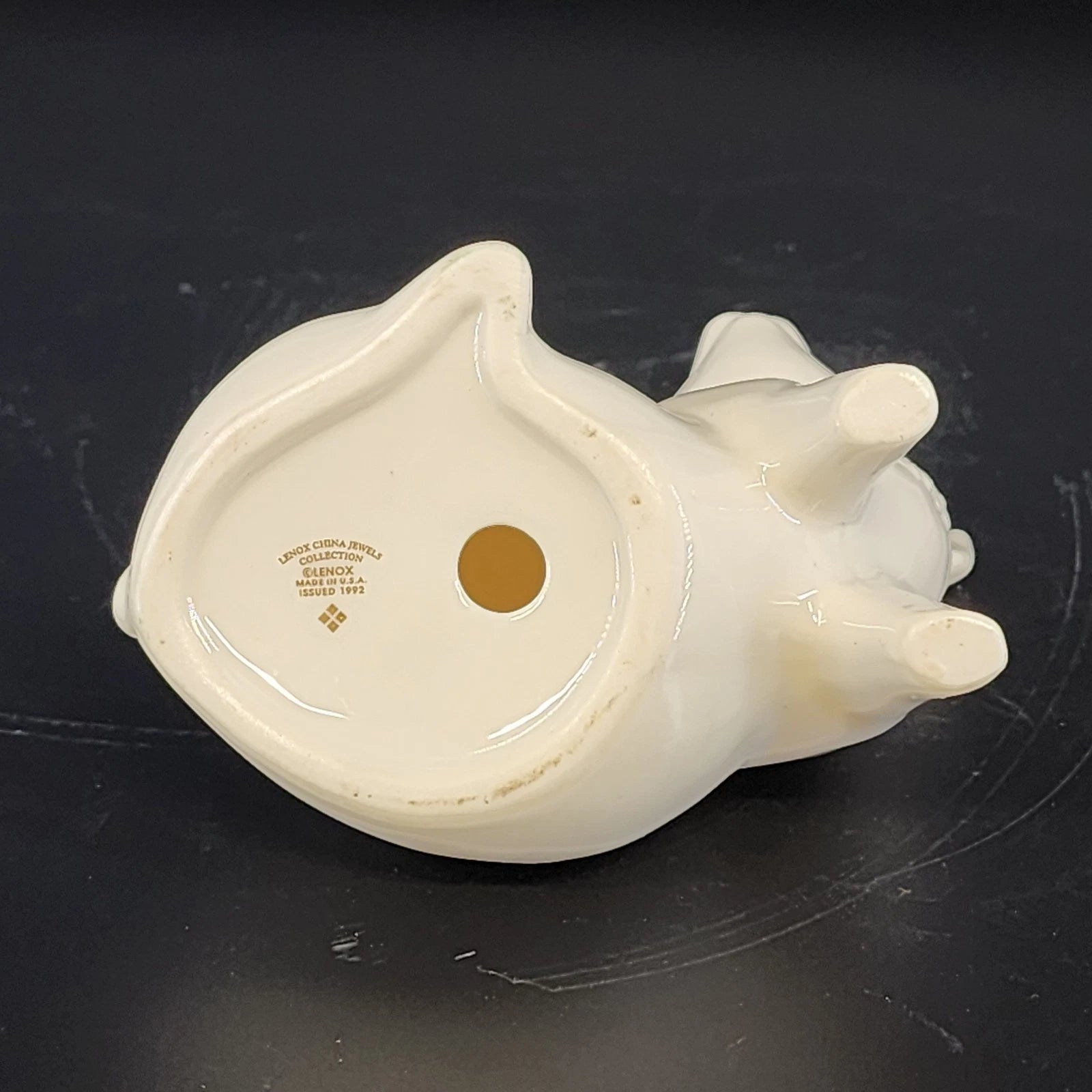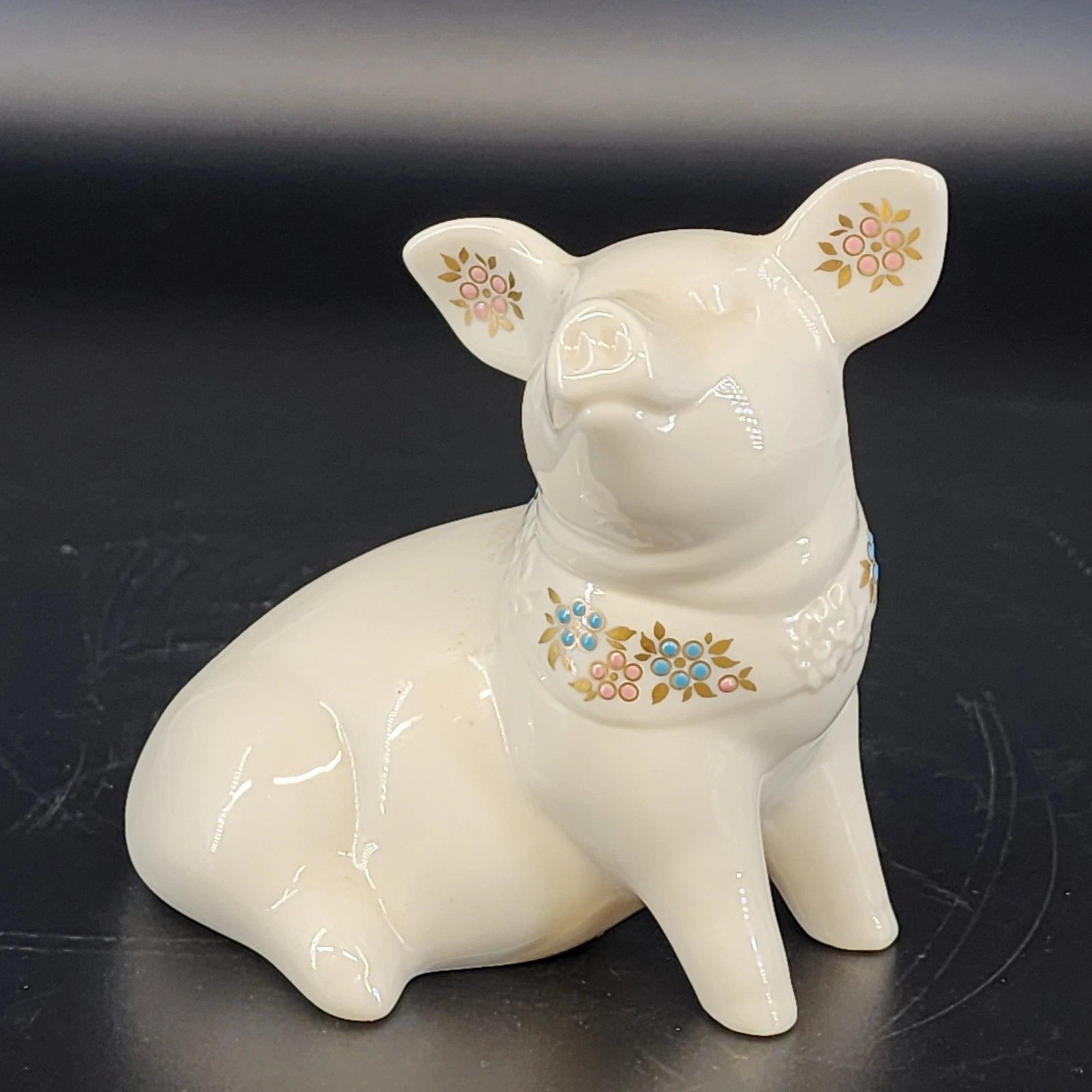 Add a touch of whimsical luxury to your collection with this exquisite pig figurine from the prestigious Lenox China Jewels Collection. Crafted from fine ivory porcelain, this charming pig is decorated with delicate, hand-applied enamel flowers and shimmering 24k gold leaves. The signature "China Jewels" style combines classic Lenox elegance with vibrant jewel-toned accents, making this a standout piece for any shelf or display case. Whether you are a pig enthusiast or a dedicated Lenox collector, this retired piece is a perfect example of fine American porcelain artistry.