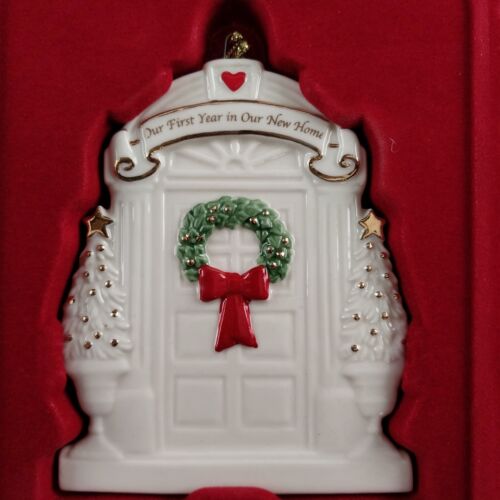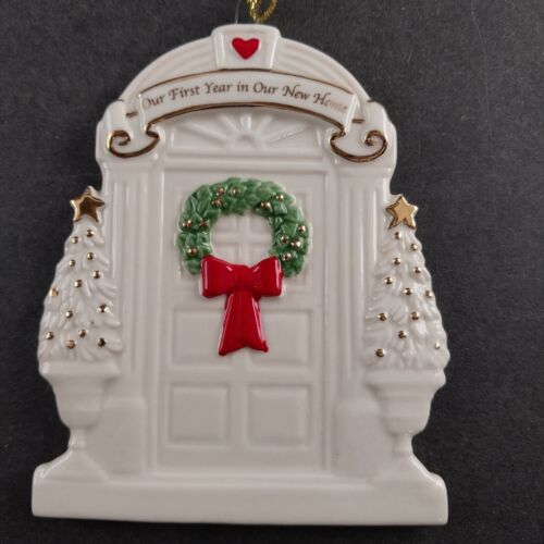 Celebrate the joy of a new home with this elegant Lenox "Our First Year in Our New Home" Porcelain Ornament.