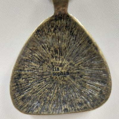 This stunning Lia Sophia necklace features a black leather cord and a vibrant, multicolor abalone and bronze pendant for a modern yet earthy look. Its unique design is completed with a secure lobster closure, making it both stylish and practical.