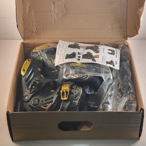 Hit the pavement in style with these LIKU Unisex Fitness Inline Skates in sleek black and gold. Designed for comfort, performance, and durability, these skates are perfect for beginners or experienced skaters looking for a snug, reliable fit. Comes brand new in original packaging, still sealed in plastic.
