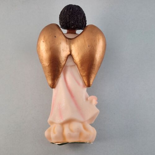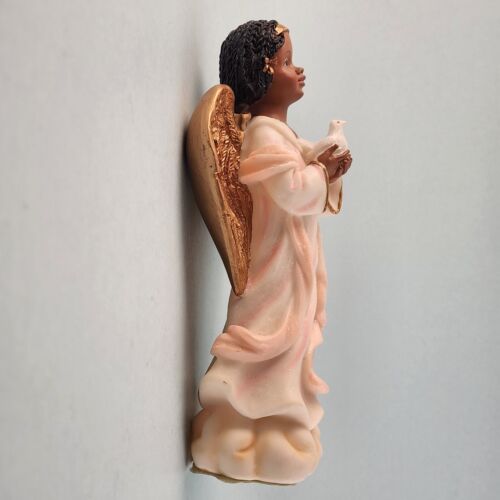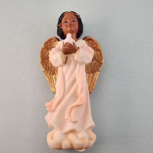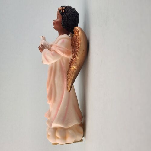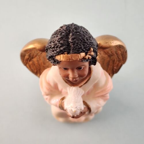 Little Girl Resin Angel Figurine Gold Wings Holding a White Dove Vintage 6½" H