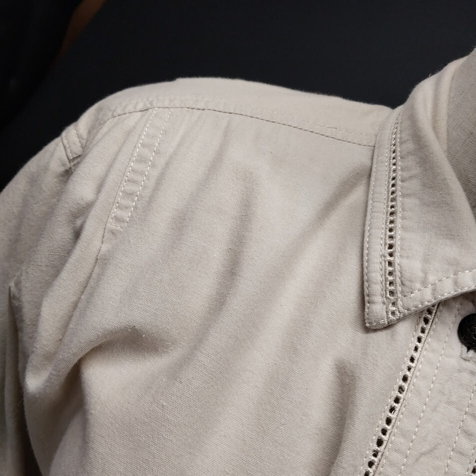 Liz Claiborne Chic Beige Cotton Shirt Dress Button Front with Belt Pockets Sz 4