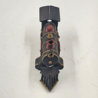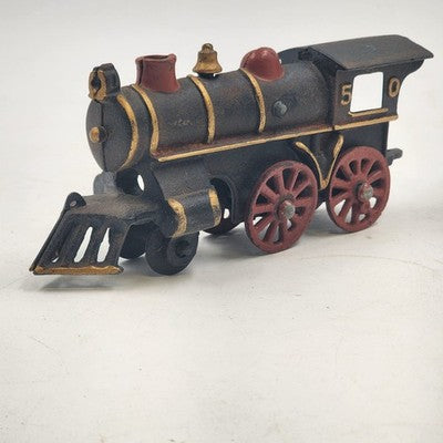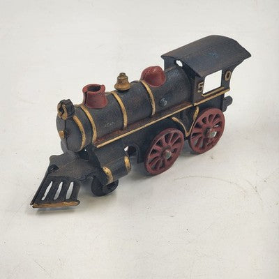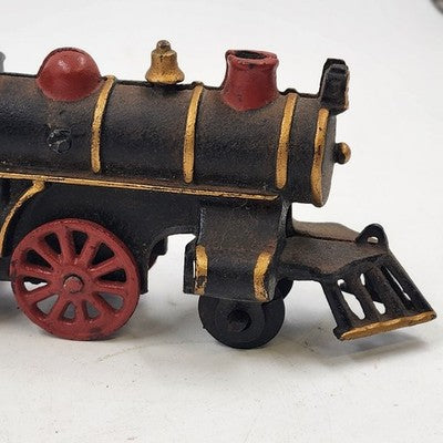Add a classic piece to your collection with this cast iron black locomotive train engine featuring bold red wheels. A solid, detailed vintage collectible perfect for display or as a gift for train enthusiasts.
