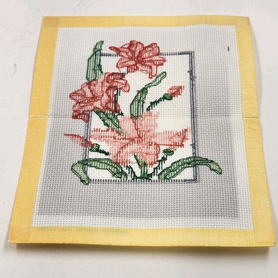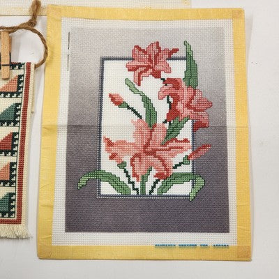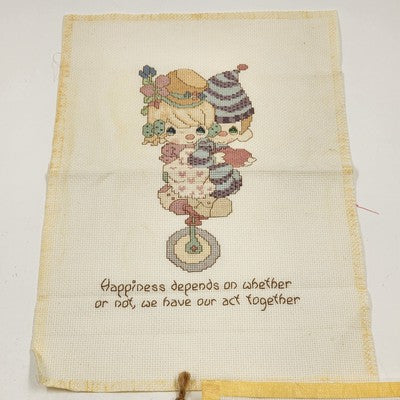 Lot of 3 Finished Aida Cloth Cross Stitch Pieces Precious Moments Floral Geo