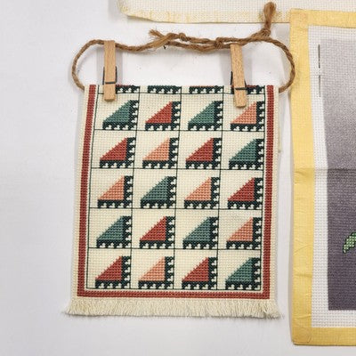 Add charm to your craft collection with this lot of 3 finished cross-stitch pieces on Aida cloth. Each unframed piece showcases detailed hand stitching in vibrant, multicolor designs-perfect for framing, quilting, or repurposing into creative projects.