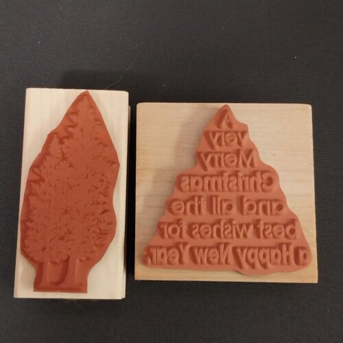 Lot of 5 Christmas Holiday Rubber Stamps Trees, Stocking, Merry Christmas