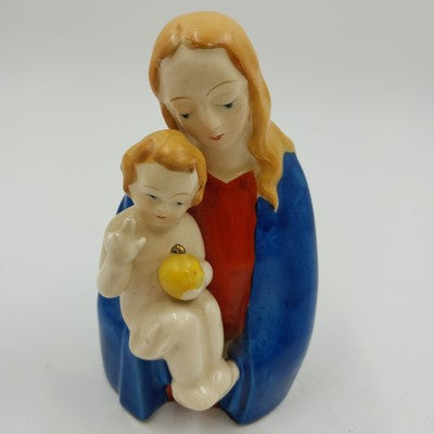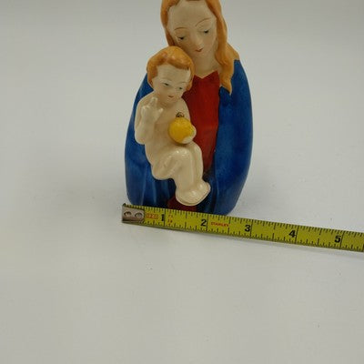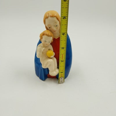 Madonna Virgin Mary & Baby Jesus Figurine Japan Ceramic Porcelain Vtg 5"x2.5"