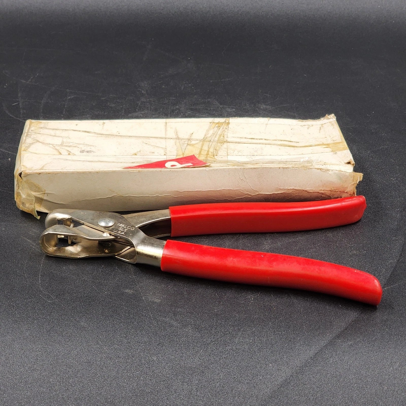 Upgrade your tool belt with this Vintage Malco SL-5 Snap Lock Punch. This high-performance hand tool is designed to punch tabs in the cut edges of siding panels to lock them into the utility trim. Unlike modern plastic-heavy alternatives, this vintage American-made version features a rugged aluminum body with comfortable red ergonomic grips.