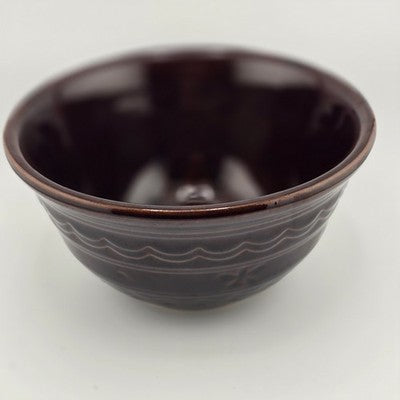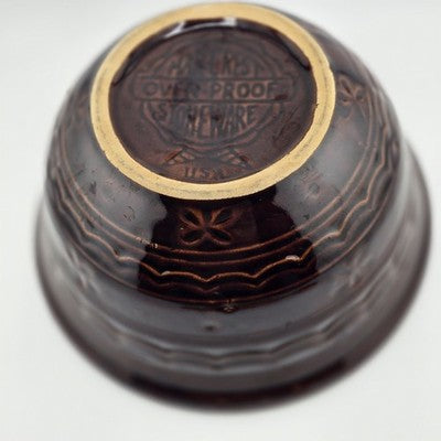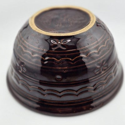 Marcrest Stoneware 1 Qt Mixing Bowl Daisy and Dot Pattern Brown Ovenproof USA