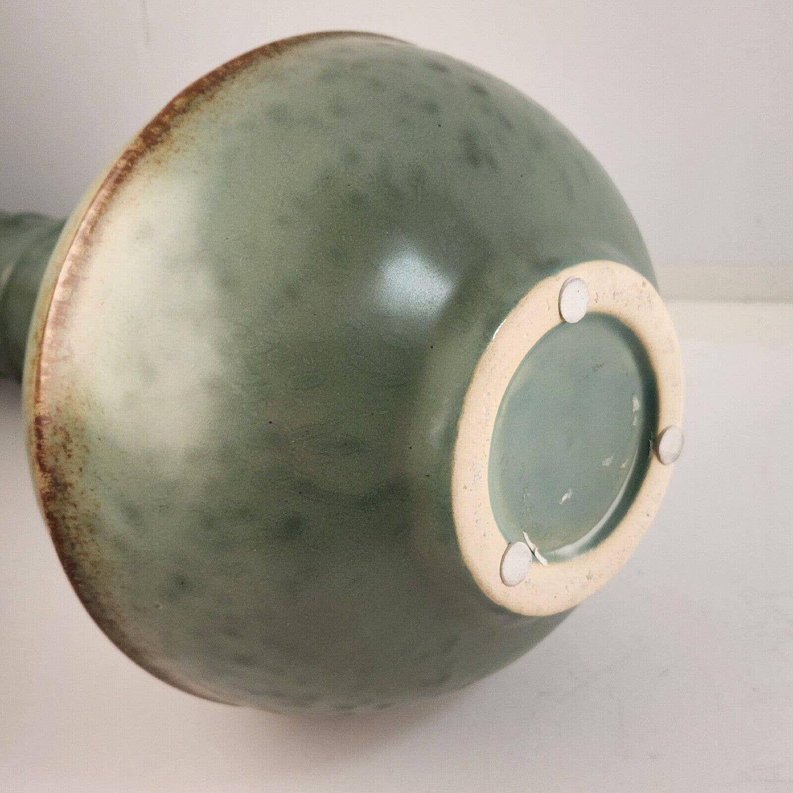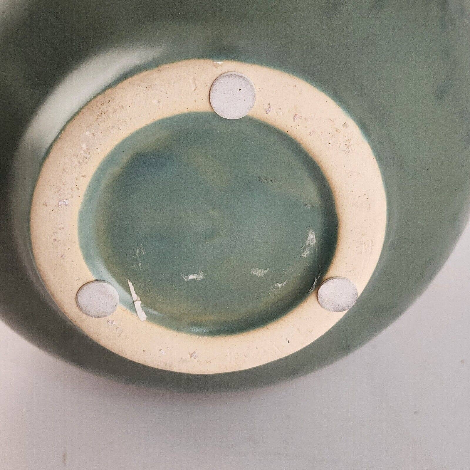 Matte Green Pottery Chimney Vase Arts & Crafts Modern Ribbed 7" w x 12.25" h