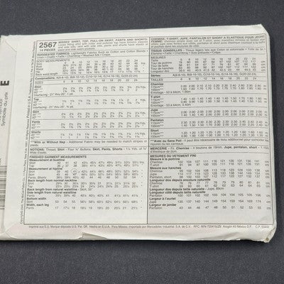 McCall's 2567 Vtg Sewing Pattern 2000 Uncut Misses Shirt Skirt Pants Size B 8-12