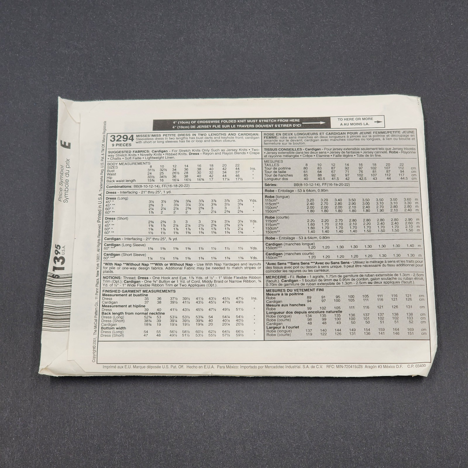 McCall's 3294 Vintage Sewing Pattern 2001 Uncut Misses Dress Jacket Size BB 8-14
