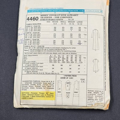 This listing features a vintage McCall's sewing pattern #4460 for a stylish Misses' cover-up, size Medium. A great find for vintage sewing enthusiasts or collectors looking to recreate classic looks.