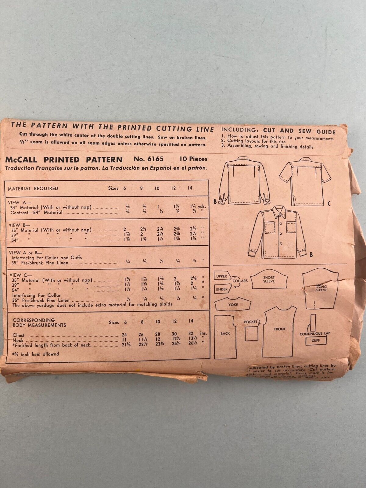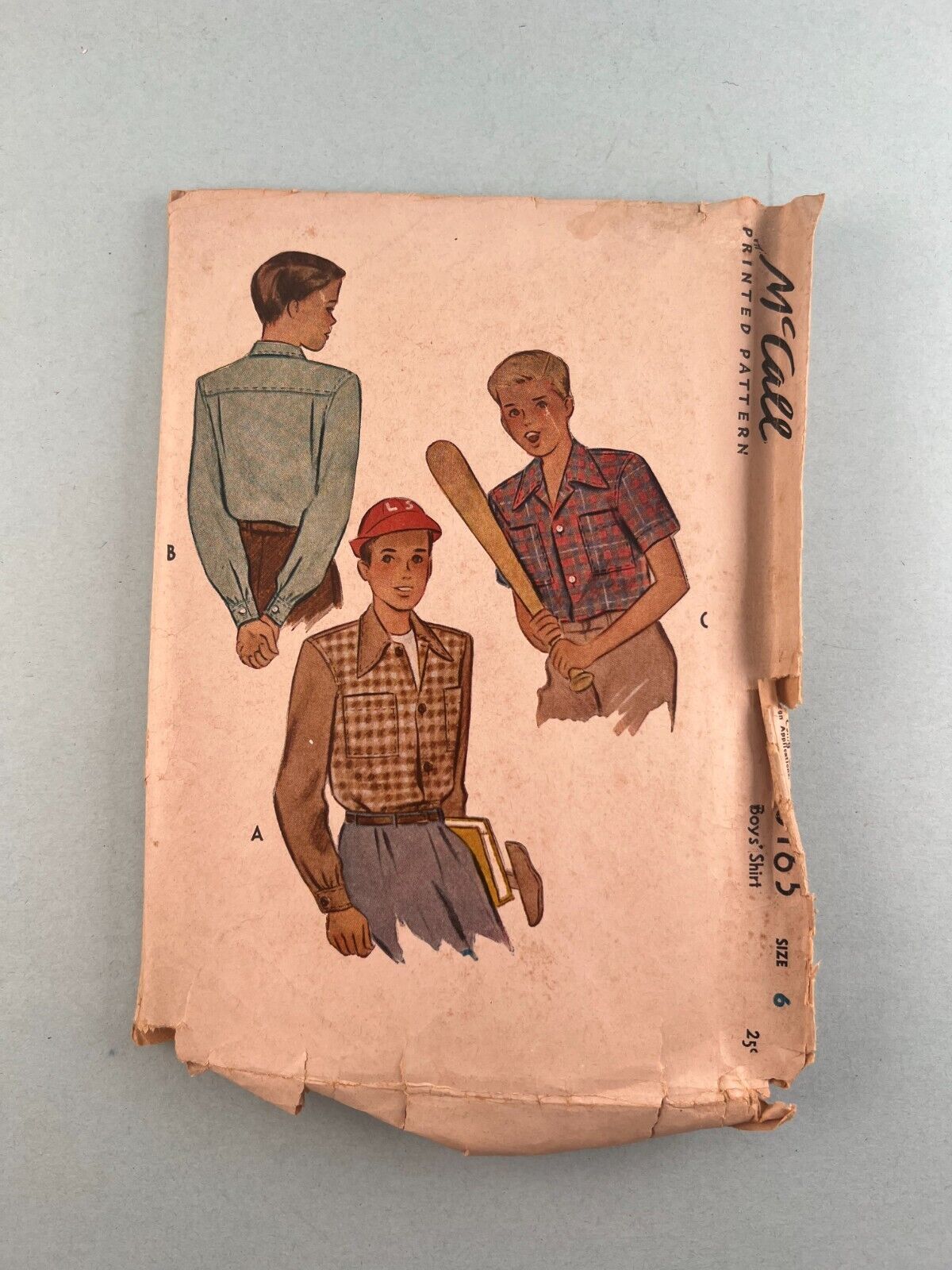 McCall's 6165 Vintage Sewing Pattern 1945 Boys Shirt Three Variations Size 6