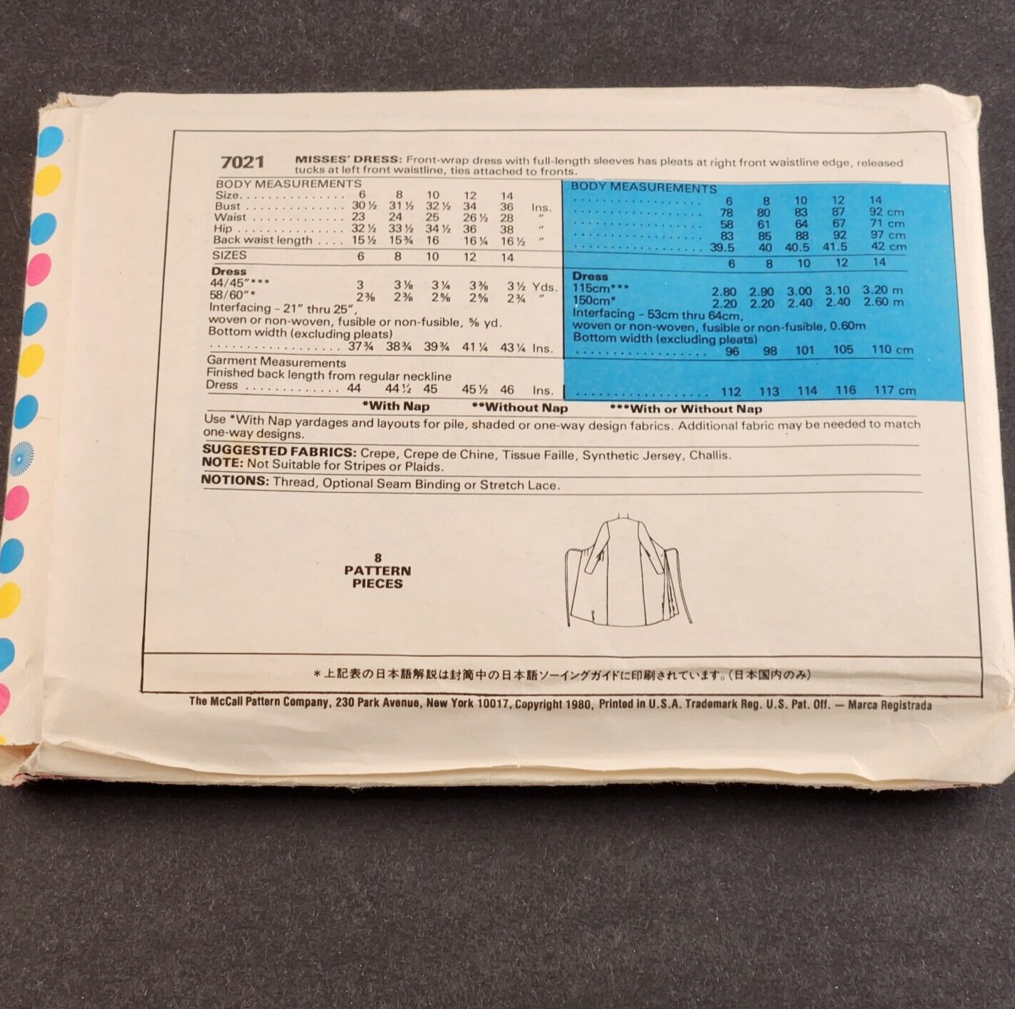 McCall's 7021 Vintage Sewing Pattern Misses Dress Size 12 Bust 34 1980