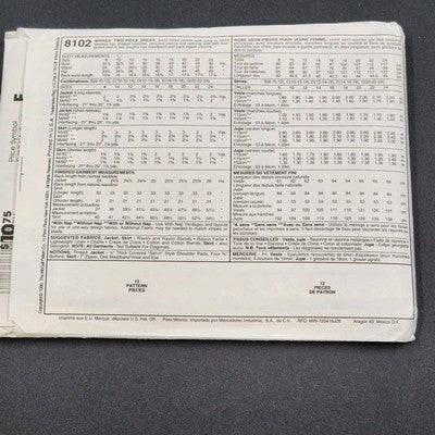 McCall's 8102 Vintage Sewing Pattern 1996 Cut Misses 2-Piece Dress Size B